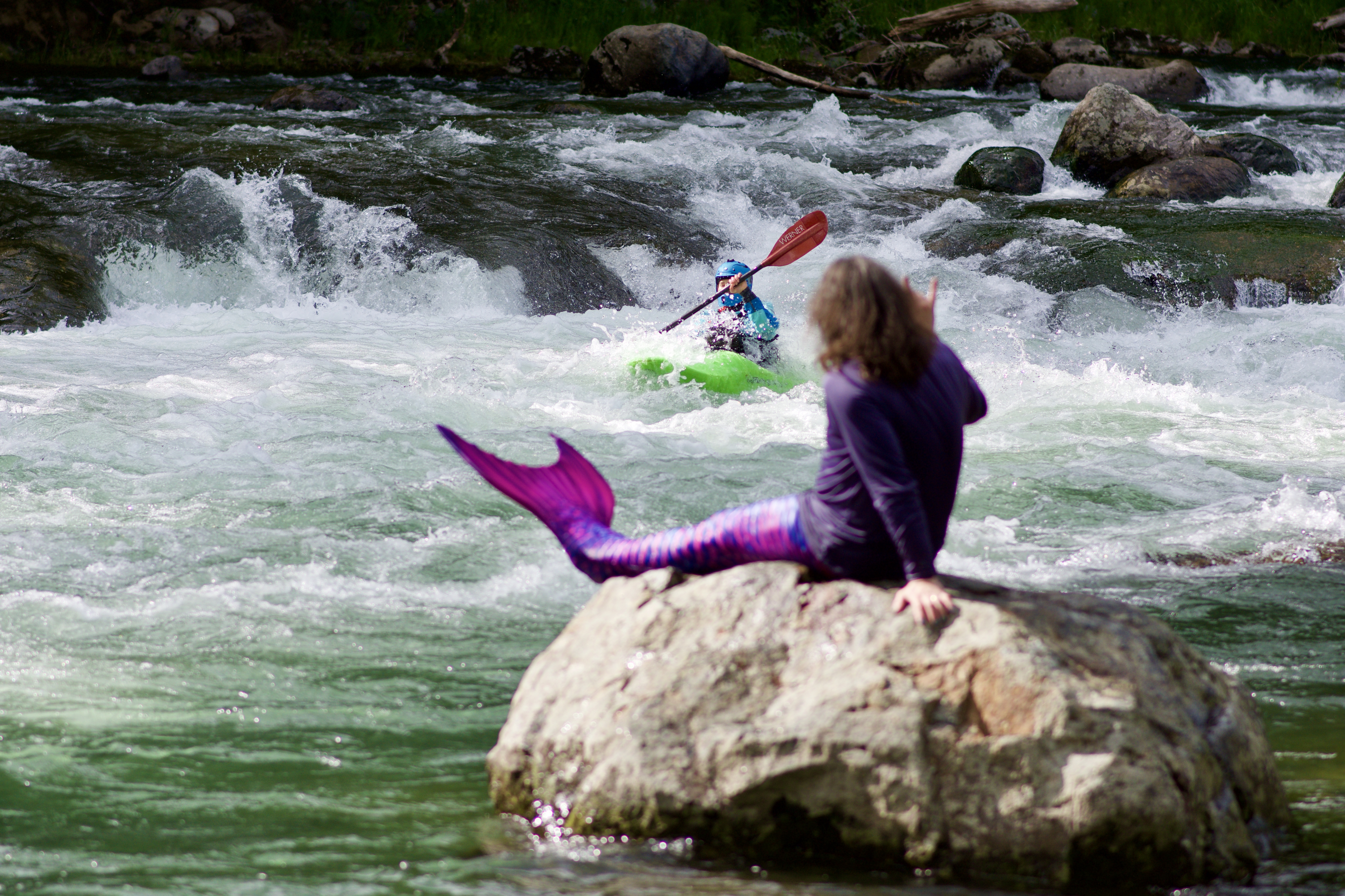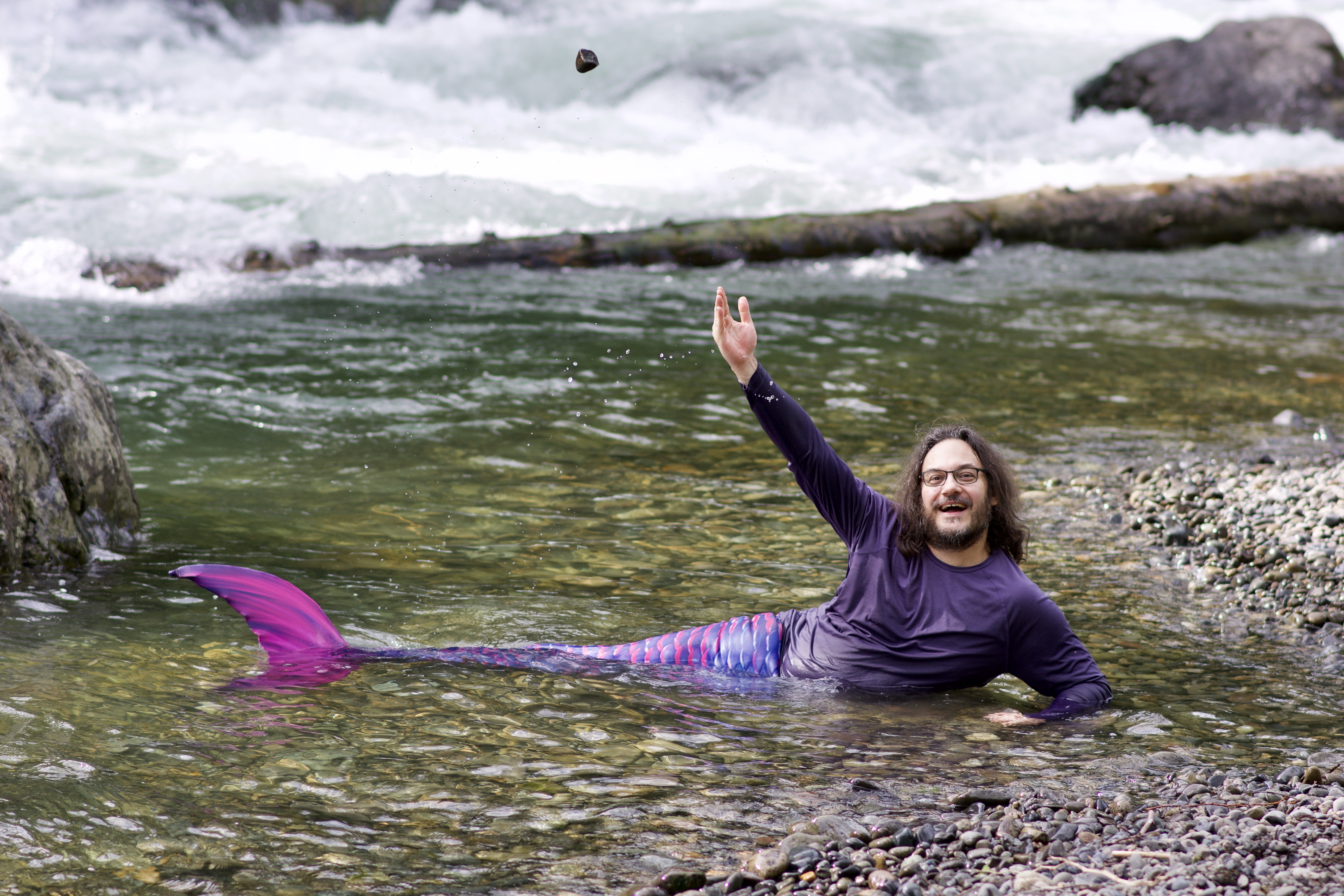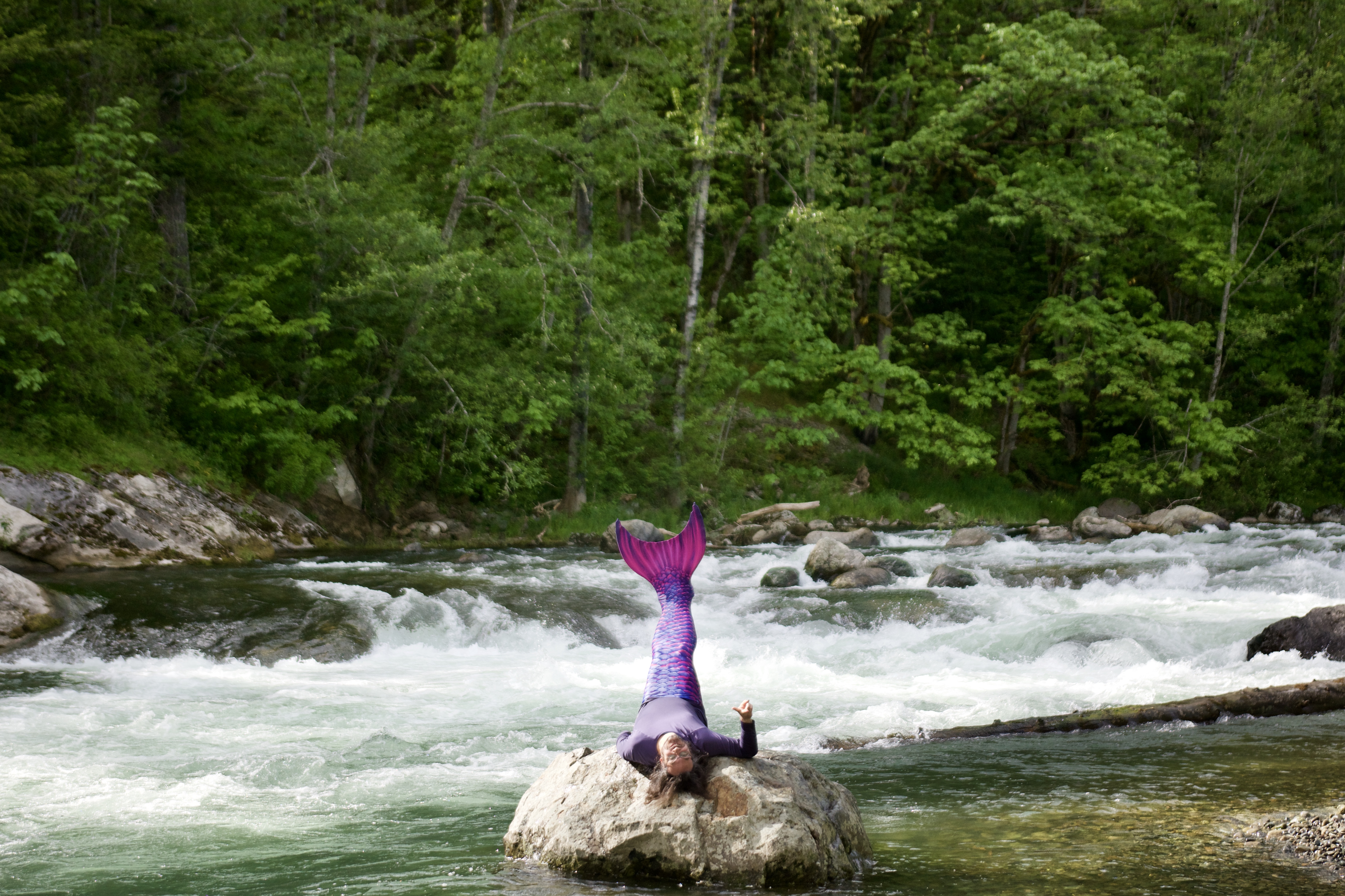 Photos of Presence playing as a mermaid, May 15, 2020 at Kanaskat-Palmer State Park near Auburn, WA.